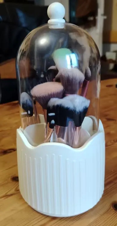 "OMG this makeup holder is a lifesaver! Fits all my brushes and lipsticks neatly. Love the 360° rotation, makes getting ready so much easier. Plus, it's super cute on my vanity! Who knew organizing could be this chic? Highly recommend for keeping your counter clutter-free.💄💅😊"